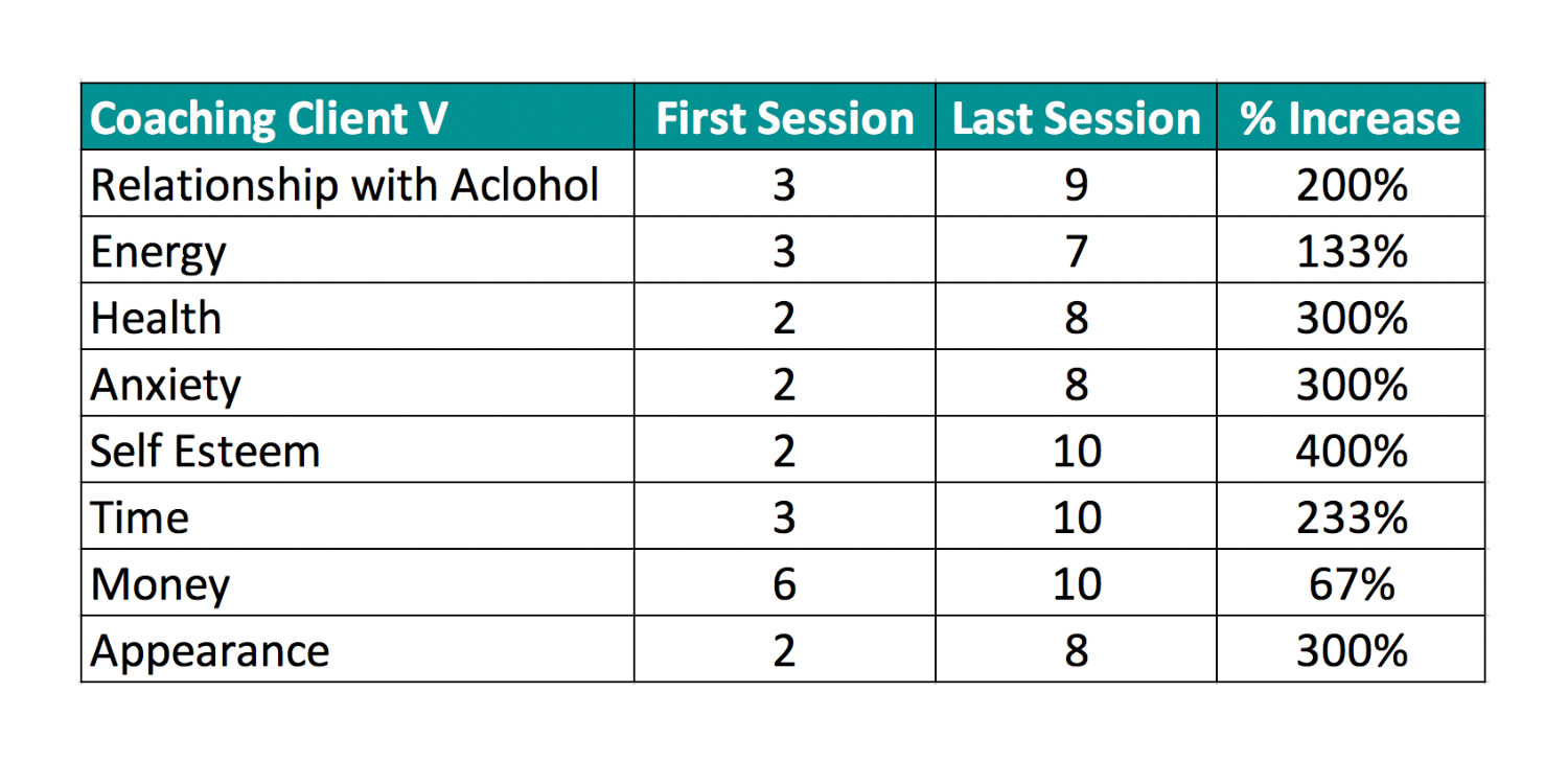 The table below shows my clients' scores of satisfaction between Session 1 and Session 6.